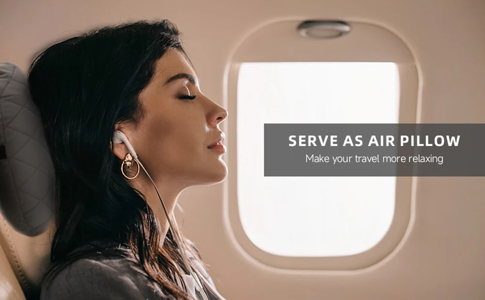3.【AIR-ADJUSTABLE TRAVEL CUSHION】Inflatable pillow ergonomic curve locks air pressure to relieve neck pain. Dual-use as an inflatable travel cushion for car/airplane seats. Professional valve design prevents leaks during sleep.