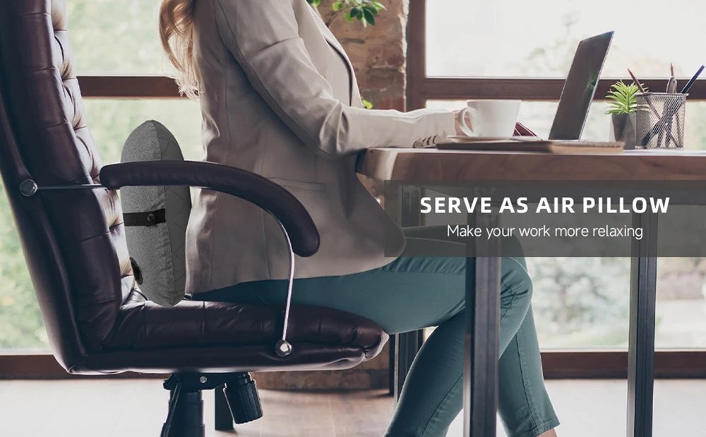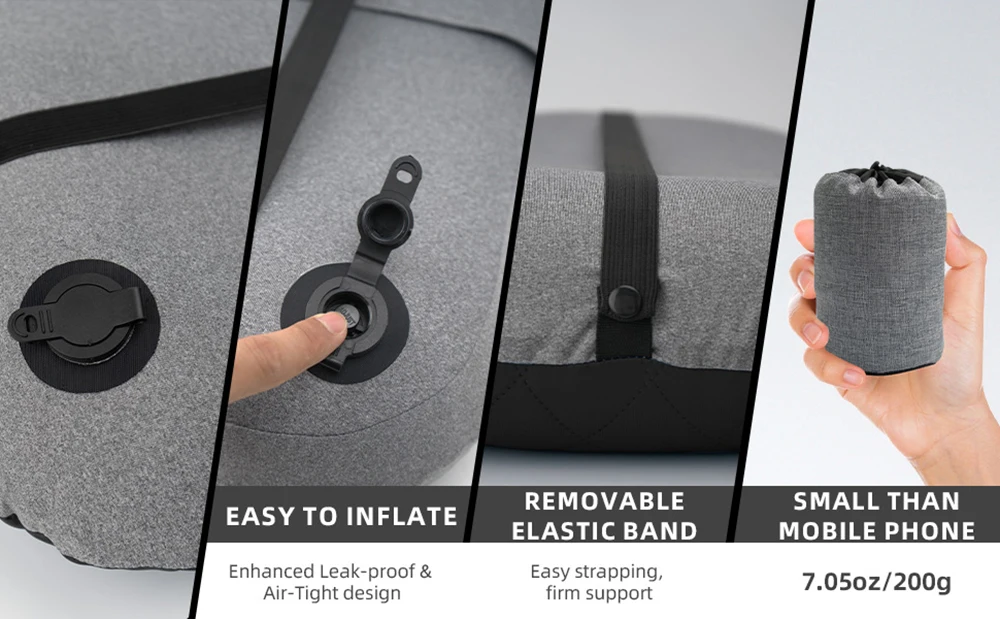 1.【3S AIR INFLATION & FIRMNESS CONTROL】Rapid inflation valve tech pumps air in 3-5 breaths (or use AIRSPIRIT portable air pump). Adjustable air flow creates an inflatable neck pillow, a contouring or air-filled lumbar cushion. Deflates instantly for compact storage.