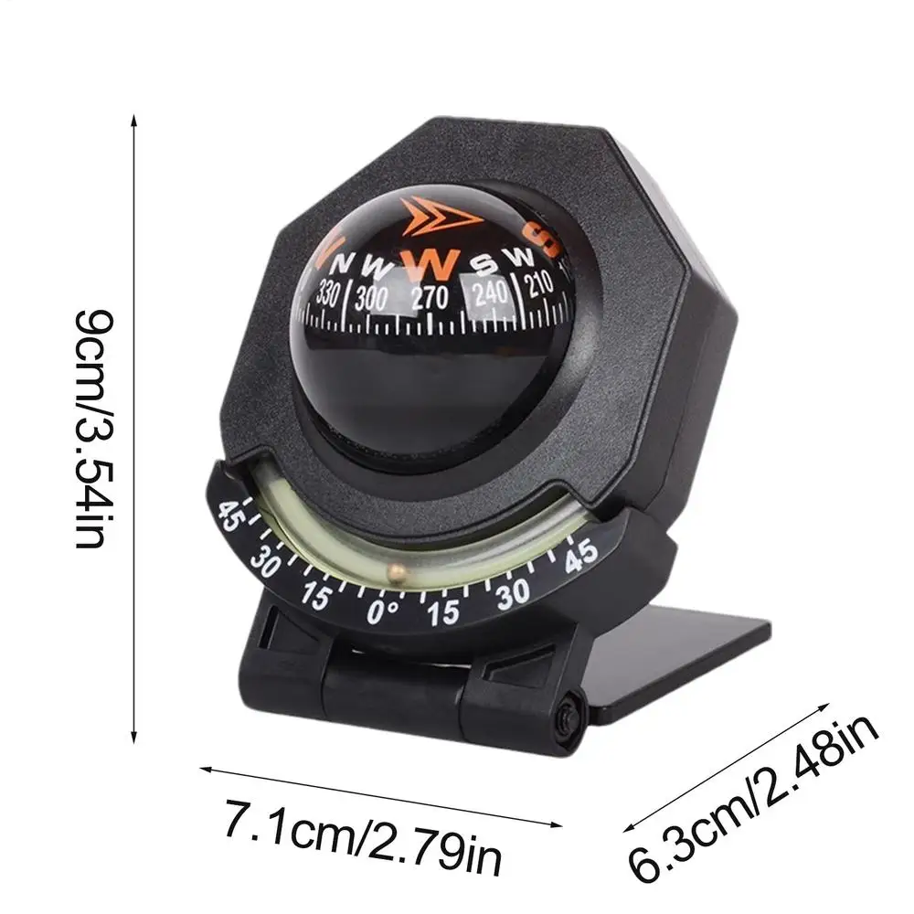 Compass For Vehicle Boat Car Dashboard Compass With Meter 2-In-1 Car Mount Compass Ball High Precision Navigation Foldable