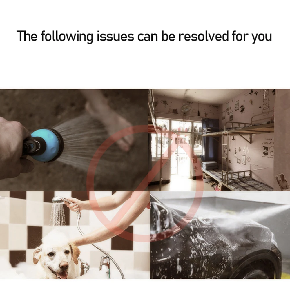 Portable outdoor shower that requires no installation and is easy to use. It comes with a built-in high-capacity battery that provides long endurance. Perfect for camping, hiking, backpacking, beach, pet washing, watering, and more.