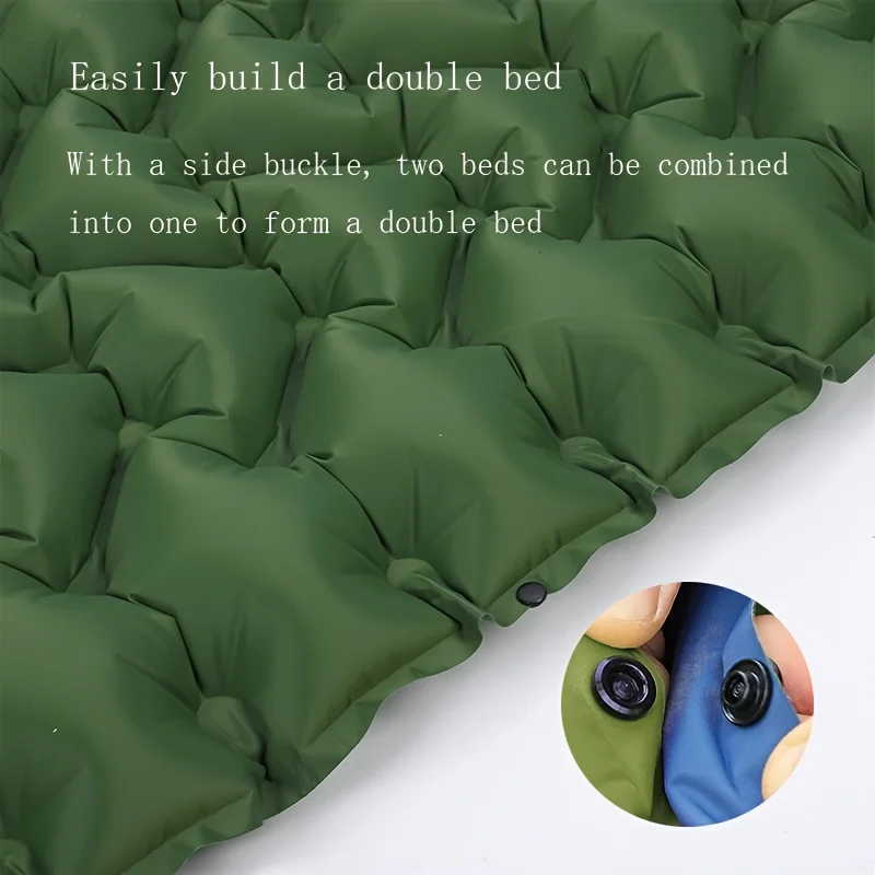 【Quick Inflation & One-Second Deflation】Built-in foot pump inflates the sleeping pad in just 40 seconds — no extra tools needed. When it’s time to pack up, deflate in one second with the quick-release valve. Side snap buttons let you connect two pads to create a double bed, perfect for couples or families.