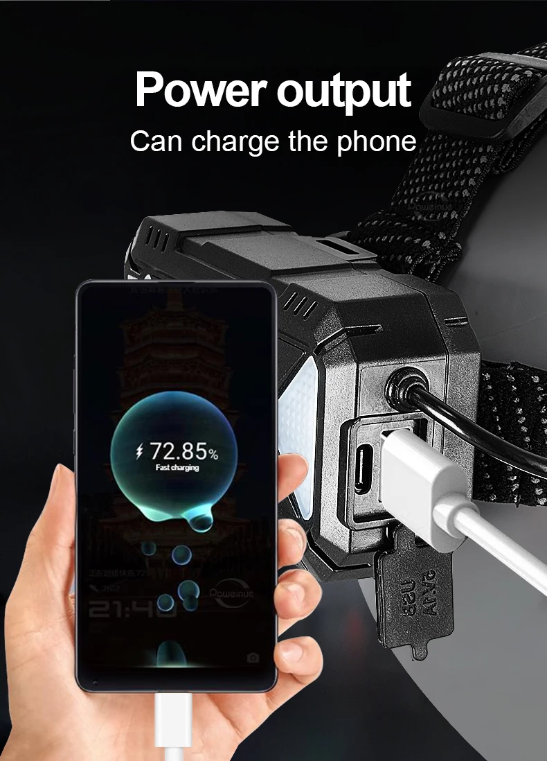 It can also support output and be used as a power bank, which will solve the anxiety of insufficient battery life for you when traveling. The battery compartment on the headlight has a digital battery display, allowing you to keep abreast of the power status of the headlight at any time, making your outdoor trip more worry-free.